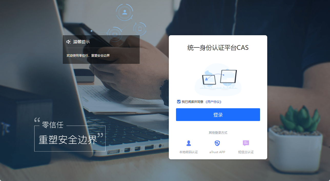 第三方廠商訪問校內特定服務器,執行運維工作,請使用aTrust客戶端,使用“本地密碼認證”進行登錄,用戶名和密碼請使用網信中心分配的用戶名和密碼,請注意及時修改密碼,保證安全。