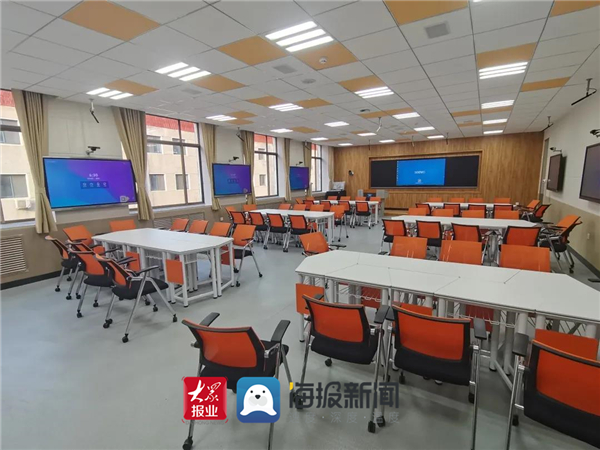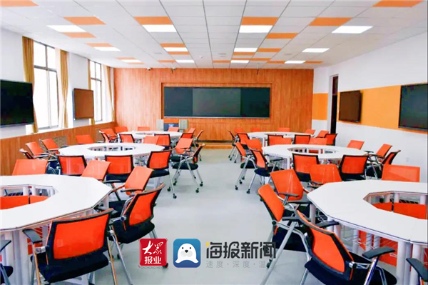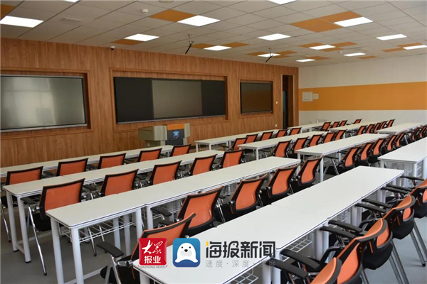 走進(jìn)煙臺大學(xué)六教204“精品錄播智慧教室”,米白色課桌及橙黃色高靠背座椅分組有序地?cái)[放在教室中,給人的感覺清新明亮。室內(nèi)桌椅分為6組,每組可容納10人。據(jù)介紹,教室內(nèi)的桌椅全部為可移動拼接桌椅,方便師生們根據(jù)不同的學(xué)習(xí)內(nèi)容和教學(xué)需要,調(diào)整為三角形、圓形、長方形、六邊形等不同形狀,開展不同形式的分組討論,以往傳統(tǒng)教室里學(xué)生們扭過頭探著身子討論的場景不復(fù)存在了。