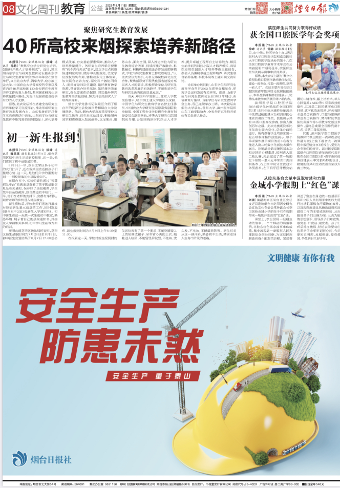 《煙臺日報》8月11日08版刊發(fā)《聚焦研究生教育發(fā)展!40所高校代表齊聚煙臺,探索研究生培養(yǎng)新路徑》