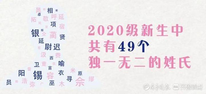 2020級新生在百家姓中,王、張、李、劉、楊“稱霸”了前5名,此外還有49個獨一無二的姓氏。相遇即是緣分,重名更是幸運,叫一聲“王碩”會有6位同學回頭。