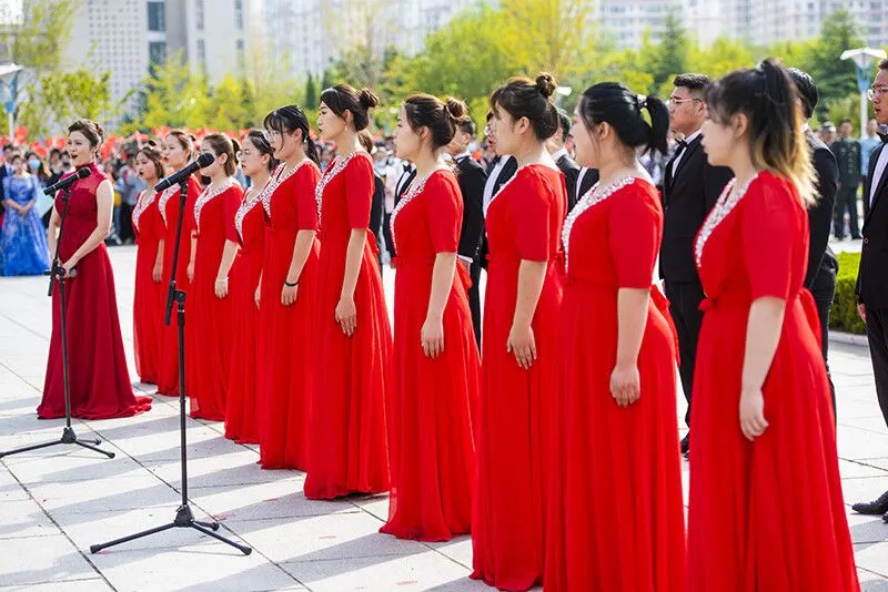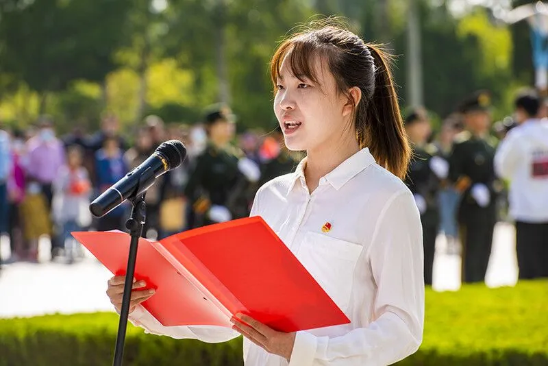 升旗儀式上,2020級新生林玉青同學以《青春奮進 筑夢家國》為題進行了國旗下的演講,一字一句傳遞著用青春奮斗書寫使命擔當的信心和力量。歌曲《中國力量》致敬家國情懷,謳歌深沉昂揚的中國力量。“一場驚心動魄的抗疫大戰,一場艱苦卓絕的歷史大考,創造了人類同疾病斗爭史上又一個英勇壯舉?!憋h揚的國旗下,師生代表配樂詩朗誦《這是二〇二〇年的中國》,飽含深情地回顧了以習近平同志為核心的黨中央團結帶領全國人民進行偉大抗疫斗爭的非凡歷程,禮贊奮戰在各條戰線的抗疫英雄?!耙粭l大河波浪寬,風吹稻花香兩岸……”活動尾聲,當這動聽而熟悉的旋律響起時,在場全體師生自發揮舞著手中的國旗,共同深情唱響《我的祖國》,用歌聲抒發著對偉大祖國最深沉和自豪的熱愛。