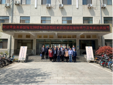 4月26日,山東省科技廳組織專家對(duì)煙臺(tái)大學(xué)首次承擔(dān)的為期三年的山東省重大科技創(chuàng)新工程項(xiàng)目“黃金基新型催化劑研制及應(yīng)用技術(shù)研究”進(jìn)行了現(xiàn)場(chǎng)驗(yàn)收。專家組成員由中國(guó)石油大學(xué)化學(xué)工程學(xué)院院長(zhǎng)楊朝合教授、中國(guó)科學(xué)院大學(xué)郝鄭平教授、山東南山科學(xué)技術(shù)研究院教授級(jí)高工鄒恩廣、天津理工大學(xué)丁軼教授、華東理工大學(xué)郭耘研究員,山東金稅通會(huì)計(jì)師事務(wù)所注冊(cè)會(huì)計(jì)師單玉華和煙臺(tái)職業(yè)學(xué)院注冊(cè)會(huì)計(jì)師于愛萍組成。山東省科技廳李百東處長(zhǎng)主持了驗(yàn)收會(huì)議。煙臺(tái)大學(xué)校長(zhǎng)郭善利、副校長(zhǎng)李合亮、科技處處長(zhǎng)陳義保、科技處副處長(zhǎng)曲世金、化學(xué)化工學(xué)院院長(zhǎng)李慶忠、項(xiàng)目合作單位中國(guó)黃金集團(tuán)長(zhǎng)春黃金研究院煙臺(tái)貴金屬材料研究所有限公司陳永紅院長(zhǎng)、項(xiàng)目組主要成員泰山學(xué)者祁彩霞教授、安立敦教授及黃金中心全體成員參加了驗(yàn)收會(huì)。煙臺(tái)市黃金局局長(zhǎng)朱戰(zhàn)勝、市科技局曲正科長(zhǎng)、于秀興科長(zhǎng)參加了會(huì)議。