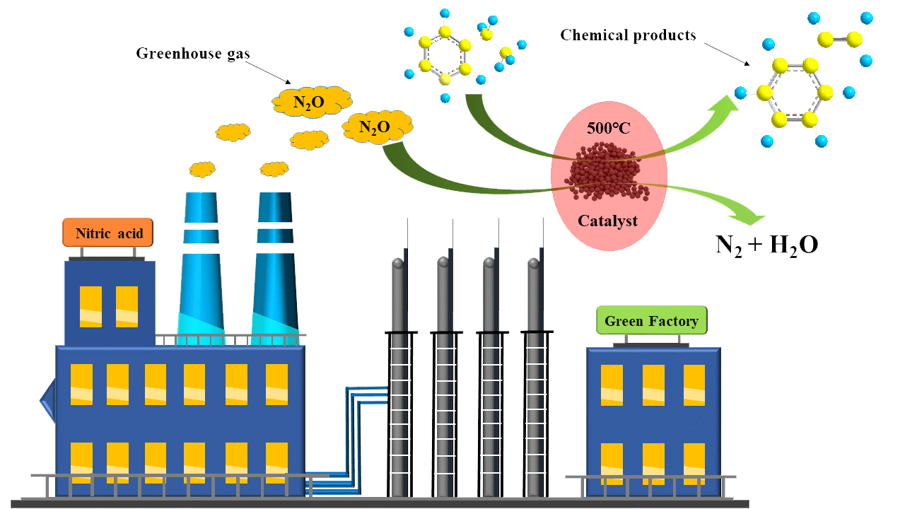 溫室氣體過量排放引起的全球變暖是國際社會普遍關注的環境問題。雖然氧化亞氮(N2O)在大氣中的濃度較低,但其溫室效應潛值(GWP)是CO2的310倍,是《京都議定書》限制排放的六種溫室氣體之一。N2O還破壞大氣臭氧層,對生態環境構成了嚴重威脅。因此,有效減排N2O廢氣是很有意義的研究課題。