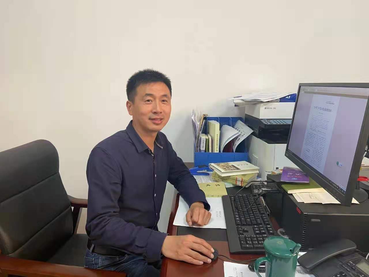 蘇鑫的辦公桌,書摞得厚厚的,歷史通讀、黨史、綱要課教案。蘇鑫坦言:“如果不了解這一類書的背景和底蘊,讀起來是枯燥的。”有一些典籍40多部,但他的工作就是要把這些枯燥的文字轉化成生動的案例,所以歷史是一定要看的。