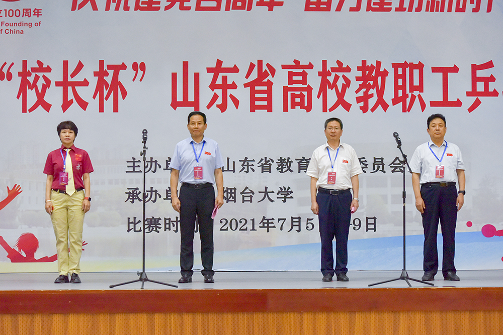 比賽組委會副主任、山東省教育工會委員會主席宋志明,煙臺大學校長段培永出席開幕式并致辭。比賽組委會裁判長、乒乓球國際級裁判丁文,比賽組委會副主任、煙臺大學副校長孫祥斌參加開幕式。