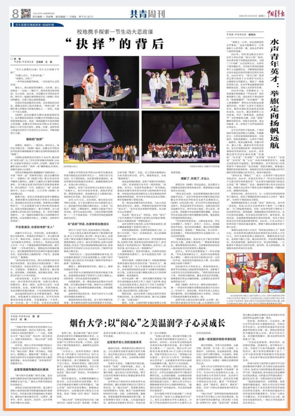 【本站訊】4月23日,世界讀書日之際,《中國青年報》08版以《煙臺大學:以“閱心”之美溫潤學子心靈成長》為題,報道了煙臺大學將書香校園建設作為全環境美育重要抓手的經驗做法,現將原文轉載如下: