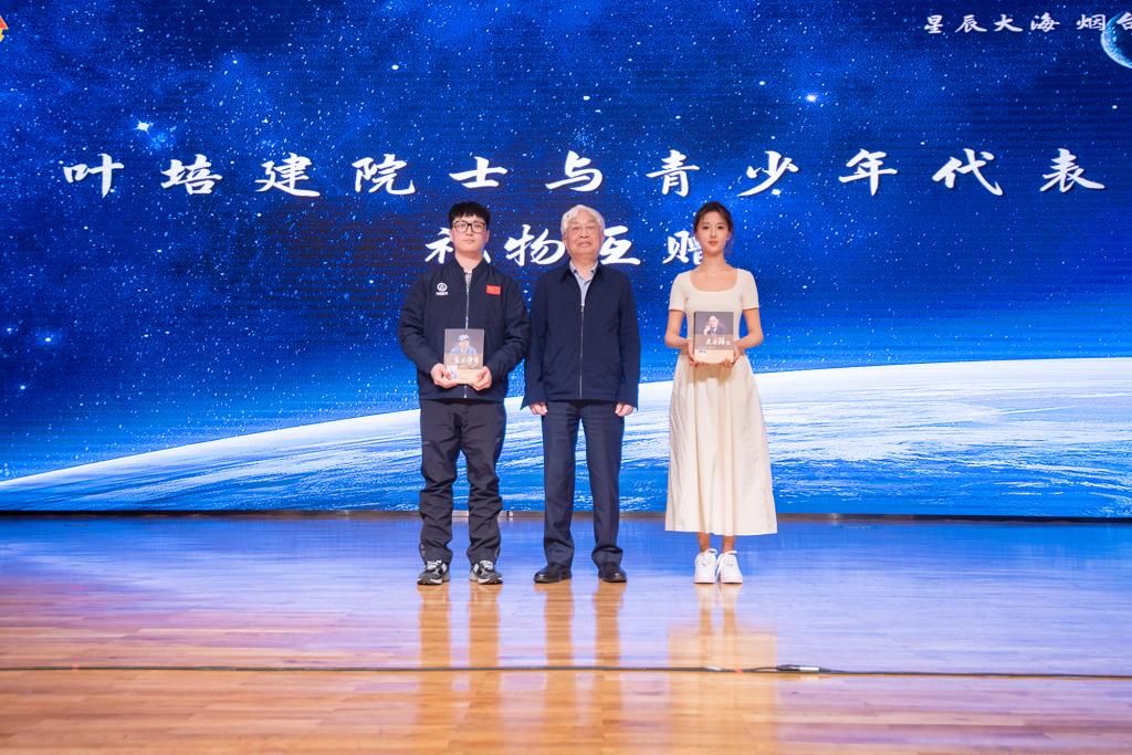 在互動環節中,青年職工和學生代表圍繞航天精神傳承、科技創新實踐等話題踴躍提問。葉培建院士結合自身經歷,深情寄語青少年厚植家國情懷,將個人成長融入民族復興大局;錘煉協作品格,在團隊合作中提升能力、磨礪意志;堅持腳踏實地,以“敢上九天攬月”的魄力和“積跬步至千里”的耐力,在平凡崗位上創造不凡業績。這番話語如春風化雨,讓現場青少年深切感受到航天精神的感染力,更激勵他們以積極姿態投身強國實踐。報告會上,青年職工代表和學生代表向葉培建院士敬獻禮物,葉培建院士向青年代表回贈了親筆簽名的著作。