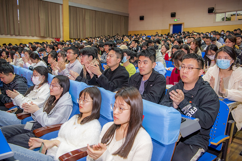啟動儀式后,中共山東省委黨校(山東行政學院)黨建部主任吳榮生教授以《增強精神力量,闊步新時代新征程——全面學習把握落實黨的二十大精神》為題,結合黨的二十大報告和習近平總書記的重要論述,從黨的二十大召開的重大意義、偉大精神引領新時代新征程、全面貫徹落實黨的二十大精神等方面作系統梳理和闡釋。吳榮生結合鮮活的事例,用擺事實、講道理的方式對黨的二十大精神作了全面的講解,為師生們上了一堂生動而深刻的思想政治理論課。