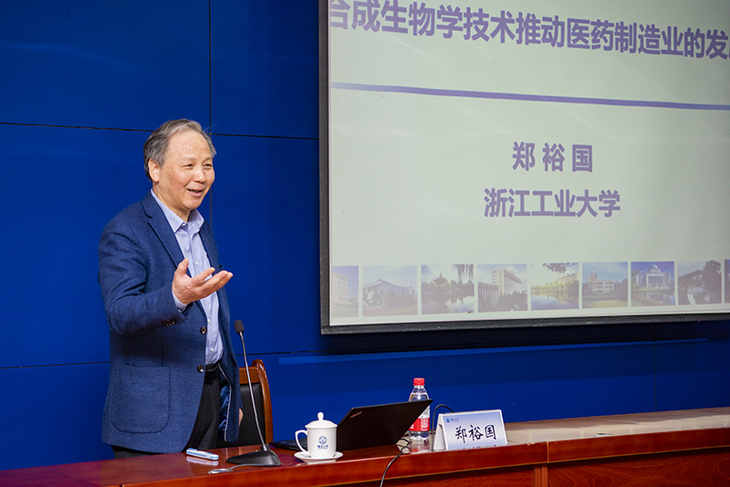 會上,張殿臣為重點實驗室第一屆學術委員會委員頒發聘書。煙臺大學生命科學學院副院長、重點實驗室主任孫利芹從實驗室組建思路、組織架構與管理、研究方向與人員隊伍、基礎與支撐條件及3年建設目標任務等方面向學術委員會委員進行了詳細匯報,委員們根據匯報內容進行深入討論并對重點實驗室建設和發展提出了寶貴建議。鄭裕國表示,重點實驗室建設要找準方向和定位,聚焦煙臺特色,利用資源優勢集中力量解決關鍵問題。隨后,鄭裕國以《合成生物學技術助推生物醫藥的創新與發展》為題作主旨報告,報告圍繞生物醫藥和生物合成、合成生物學發展及其關鍵技術開發、合成生物學技術推動醫藥制造業發展及生物醫藥未來發展方向四個方面展開,報告引發師生們的熱烈討論。