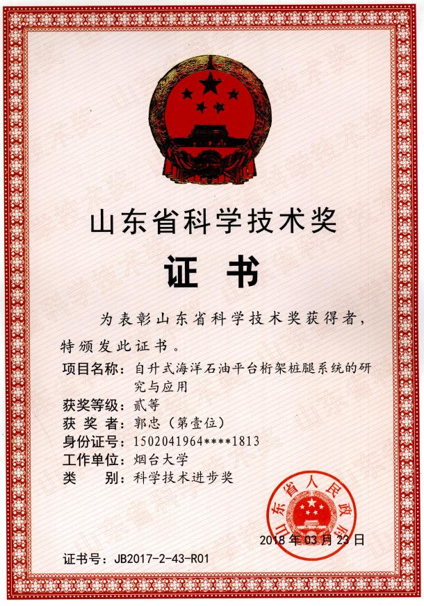 郭忠老師獲山東省科技進(jìn)步二等獎(jiǎng)