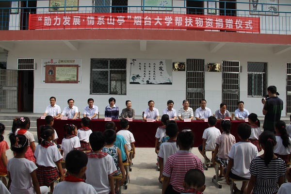 7月27日上午,“助力發展 情系山亭”煙臺大學幫扶物資捐贈儀式在山亭區山城街道巖頭村小學舉行。學校領導及山亭區委副書記、區長李春英,區委副書記李勇,區委常委、組織部部長姬偉鋒等出席活動。學校黨委書記崔明德在講話中指出,三年幫扶路,綿綿手足情。通過幫扶工作,煙臺大學與山亭區結下了深厚的友誼,三個幫包村發生了巨大的變化。農村生產生活條件明顯改善,村莊道路、自來水等基礎設施不斷優化,基本社會保障健全,村容村貌整潔,村莊的精神文明和物質文明建設取得了長足的發展。李春英區長代表區委、區政府對煙臺大學一直以來的關心支持表示衷心感謝。她說,煙臺大學派駐的“第一書記”工作深入,作風扎實,情況掌握得透,問題把握得準,工作有思路、有措施、有成效,為幫扶村注入了強大的發展動力。