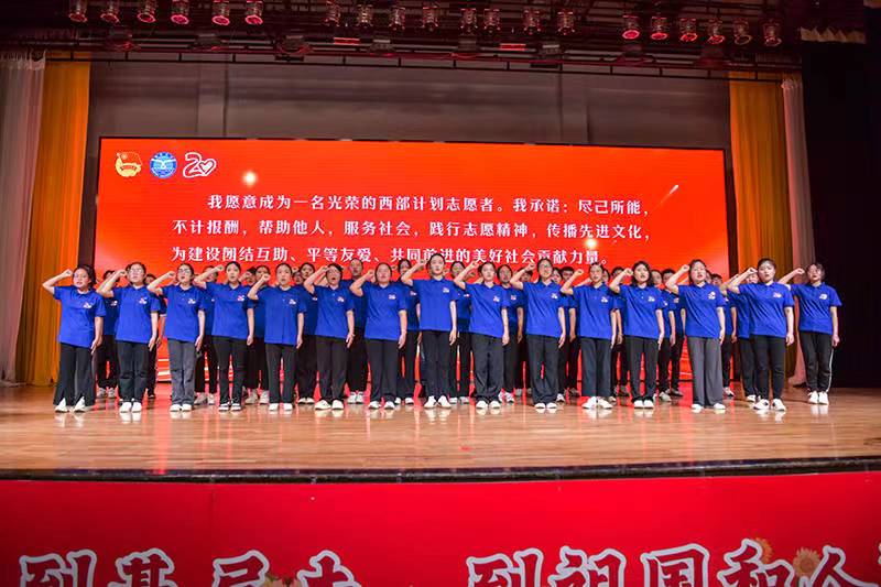 儀式在“到西部去、到基層去、到祖國最需要的地方去”的錚錚誓言和合唱《到西部去》中落下帷幕。儀式結束后,張殿臣和段培永與志愿者們進行了交流,向他們表示親切慰問和美好祝福。