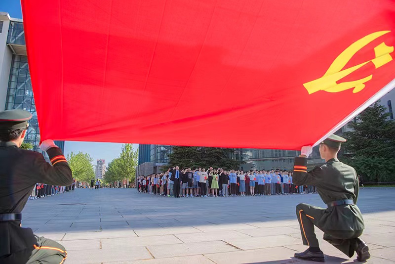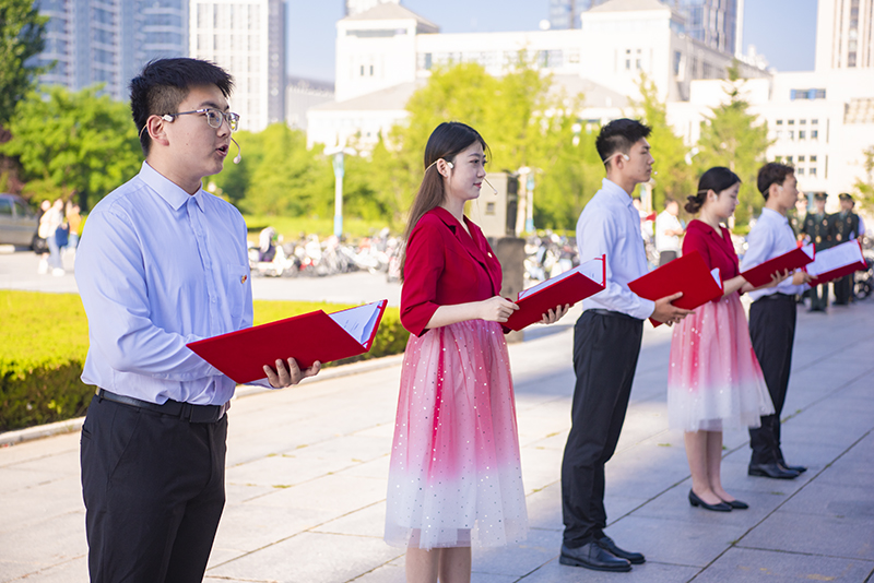 7月1日上午7時,學校組織開展中國共產黨成立102周年主題升旗儀式,各學院黨員及青年代表等2000余人參加。煙臺大學國旗護衛隊隊員邁著整齊劃一的步伐,護衛國旗走向升旗臺。升旗手振臂一揮,五星紅旗伴隨著國歌冉冉升起。在場師生向國旗肅立,行注目禮,高唱國歌,共同感受這一莊重而自豪的時刻。國旗下,青年代表通過詩朗誦《青春獻給黨》,把心中的頌歌獻給黨。在場師生黨員重溫入黨誓詞。活動最后,全體師生揮動著手中的紅旗,共同深情唱響《歌唱祖國》,以真摯的歌聲祝福黨生日快樂,祝愿偉大的祖國更加繁榮昌盛。