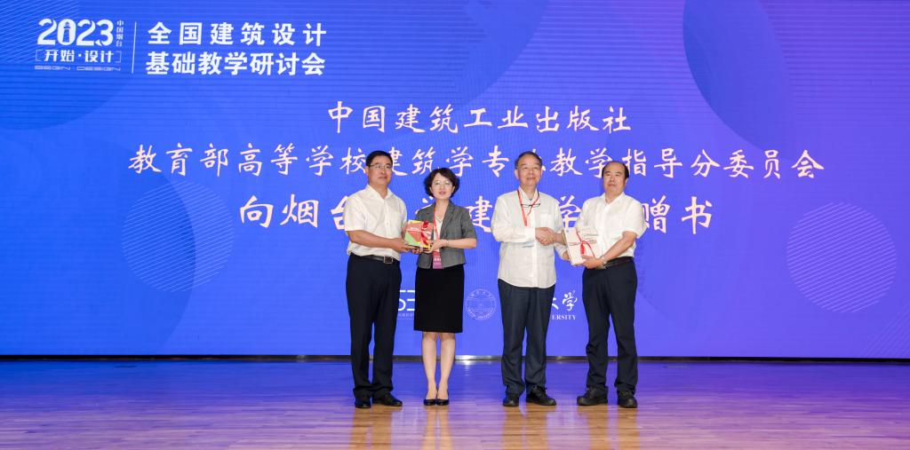 開幕式上舉行了贈書儀式,王建國院士、中國建筑工業出版社教育教材分社副社長陳樺,向煙臺大學建筑學院捐贈了400多種(部)圖書,表達對建筑教育工作的支持并對辦會學校表示感謝。煙臺大學副校長郝曙光、建筑學院院長隋杰禮代表學校、學院接受贈書。