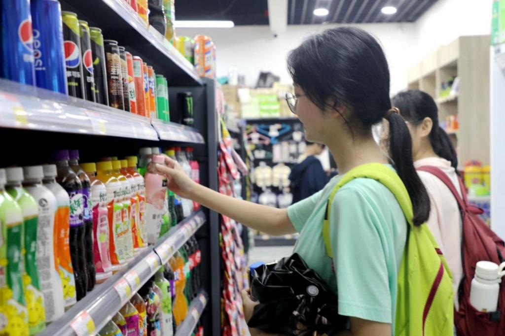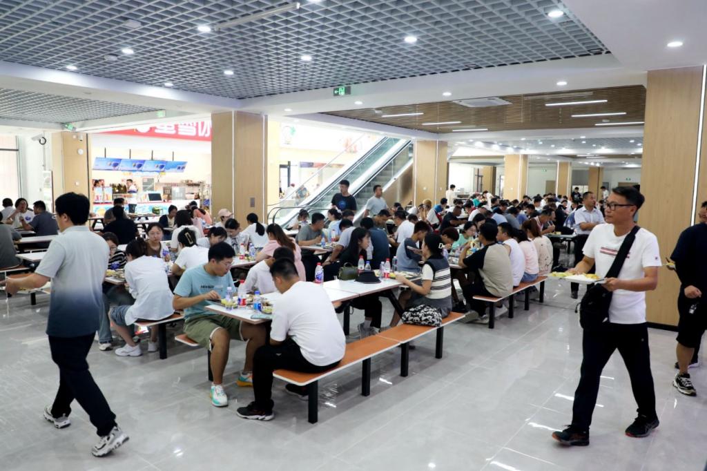 一進入餐廳,同學們就迫不及待地坐上去往更高樓層的自動扶梯,了解餐廳設置的窗口。經餐廳工作人員介紹,八角灣校區梅園餐廳共有四層,二層設有室外觀景露臺就餐區。午餐時間,師生們有序排隊取餐用餐,彼此交流著上午的體驗感受,暢想著未來的新校園生活。