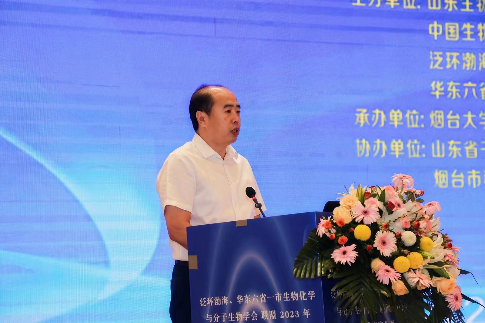 開幕式上,煙臺大學(xué)副校長郝曙光,山東生物化學(xué)與分子生物學(xué)會理事長、山東第一醫(yī)科大學(xué)黨委副書記劉思金,中國生物化學(xué)與分子生物學(xué)會副理事長、中國科學(xué)院院士、上海交通大學(xué)陳國強教授分別代表承辦單位和學(xué)會致辭。開幕式由生命科學(xué)學(xué)院院長孫利芹主持。