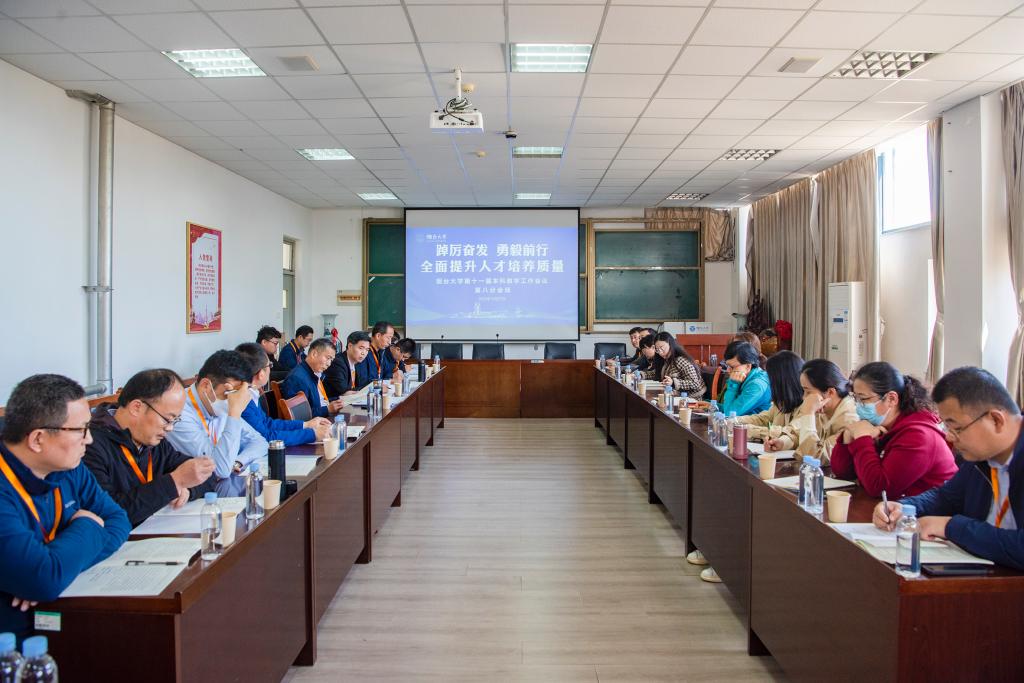 圍繞做好下一階段本科教學工作,張殿臣強調,一是提高政治站位,準確把握高等教育面臨的新形勢新任務。黨中央、國務院和教育部、山東省出臺《深化新時代教育評價改革總體方案》等系列文件,要吃透精神、把準要義,同時立足學校實際,深入研究、明確方向、細化措施,抓好落實。要深刻認識高等教育高質量發展的新形勢新任務,聚焦立德樹人根本任務、努力辦好人民滿意的教育。二是深化改革創新,努力實現人才培養質量新躍升。要立足學校工作實際,聚焦經濟社會發展的重點、熱點,找準制約本科教育教學質量提升的難點、堵點,持續深化改革創新,切實提高本科教育教學質量和學生創新創業能力。要融入新發展格局、持續優化學科專業結構,抓實抓好課程建設、持續深化課堂教學改革,加強教育引導和鍛煉、提升學生創新創業意識與能力,持續深化教育評價改革。三是加強隊伍建設,充分彰顯高素質專業化教師隊伍新風貌。要充分發揮教師教學主導作用,努力造就師德高尚、業務精湛、結構合理、充滿活力的高素質專業化教師隊伍。要下大力氣持續做好教師隊伍建設工作,從講政治的高度加強師德師風建設,多措并舉加強教師教學能力建設。四是抓好迎評促建,持續推動本科教學工作再上新臺階。新一輪審核評估既是對學校本科教育教學工作的針對性檢驗,也是學校綜合實力、辦學水平整體提升的重要機遇。要提高認識、深刻領會新一輪審核評估的重要意義,精準施策、扎實有效地做好審核評估各項工作,持之以恒、統籌抓好本科教育教學質量提升工作。