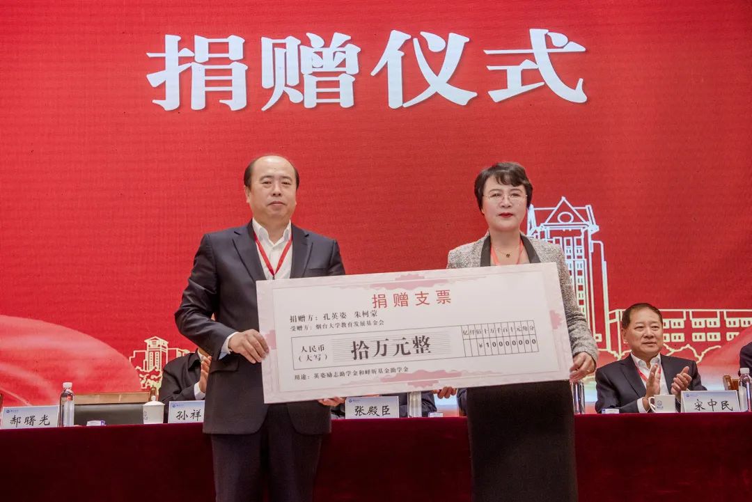 捐贈儀式中,北京校友會、深圳校友會捐贈100萬元,臨沂校友會捐贈10萬元,建筑學院2007級校友朱柯蒙和母親共同捐贈10萬元,濟寧校友會捐贈孔子雕像一座,部分校友設立獎助學金、參加“綠色煙園”樹木認養活動。學校領導代表學校依次接受校友捐贈,北京校友會常務副會長董一鳴、深圳校友會副會長梁立偉、臨沂校友會會長楊中鋒、建筑學院2007級校友朱柯蒙的母親孔英姿、濟寧校友會負責人李貴維,校友代表姜華、王偉、隋陽旸、孫偉、董錕、龐磊、徐康、張海濤、邢雷、韋如雷、張建偉、盧佳琦等到主席臺接受捐贈證書。