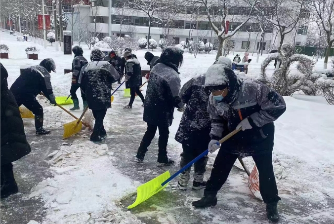 此外,學校密切關注天氣變化,黨委保衛部(處)、后勤管理處工作人員進行不間斷巡邏,加強對重點路段的巡查,在夜間安排專人值守,時刻跟進校內積雪情況,及時處理屋頂冰柱、雪后積水、冰凍,消除安全隱患。