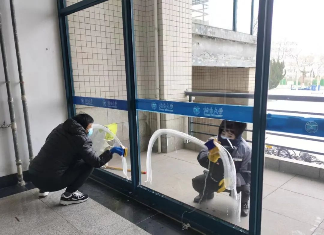 學校樓宇外,采用“機械+人工”的方式清雪除冰,集中清除樓宇頂部積雪及冰凌,掃除安全隱患。按照“衛生不留死角、清潔不留空白”的要求進行拉網式清理工作,并對校園行道樹、花灌木等落葉樹種進行修剪,確保校園景觀環境整潔優美。樓宇內,工作人員積極應對各項維修和改造任務,對包括逸夫圖書館鼓翹地板在內的地磚墻磚、課座椅及照明等設施設備進行重點維護修繕,為新學期師生工作學習的有序開展提供堅實保障。