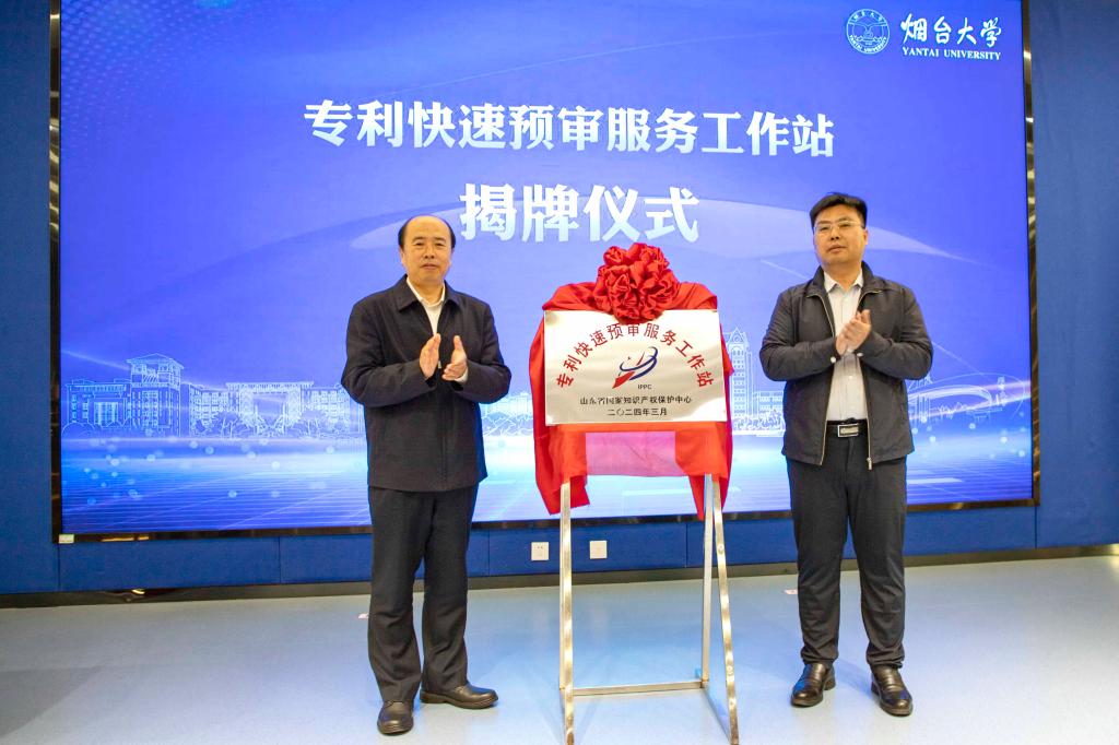【本站訊】4月19日,煙臺大學與山東省國家知識產權保護中心聯合舉辦“知識產權進高校——高校專利盤活”推介會。山東省國家知識產權保護中心主任趙加濤,煙臺大學黨委常委、副校長郝曙光出席并為“專利快速預審服務工作站”揭牌。