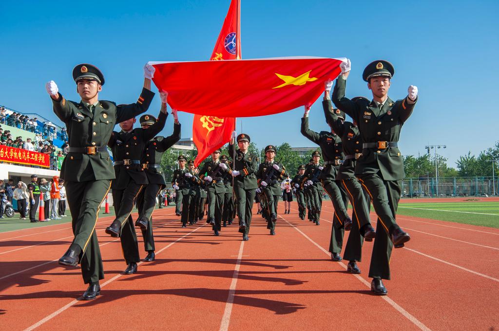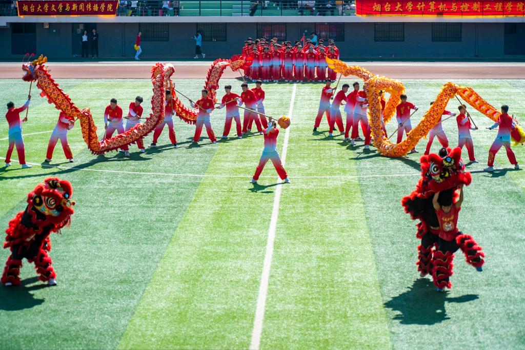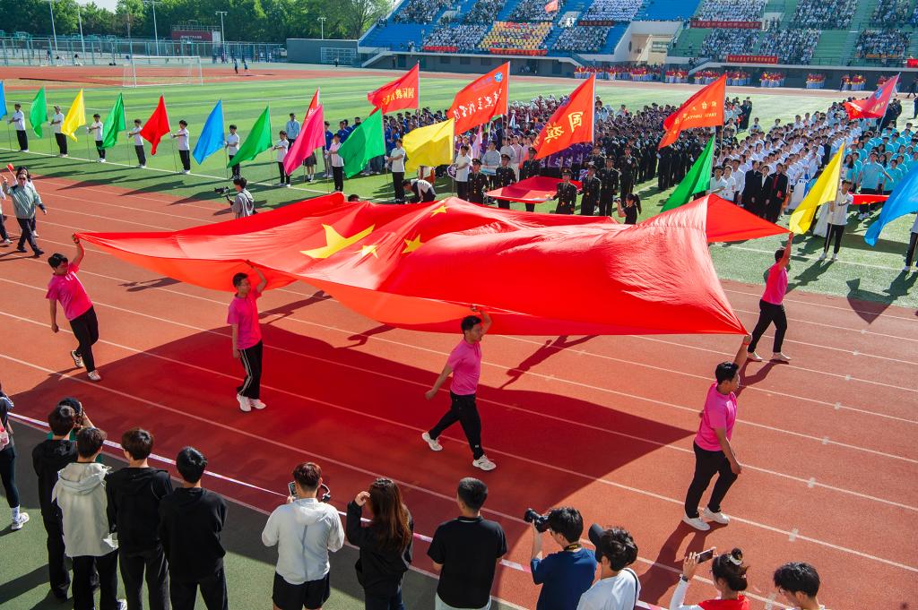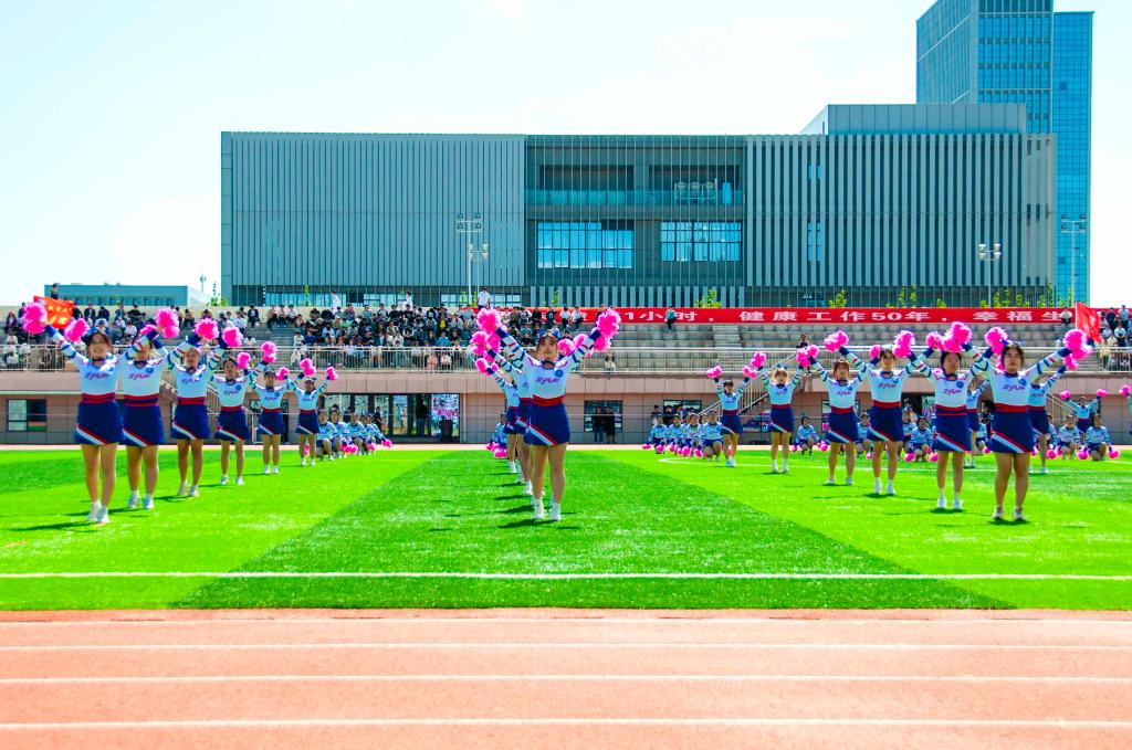 開幕式還穿插了各學院看臺方陣表演、團體操表演、武術(shù)表演、花樣跳繩、啦啦操表演以及軍事體育綜合操演。驕陽之下、綠茵場上,參演學子默契配合,動作齊整,隊形美觀,時而展現(xiàn)颯爽英姿,時而舞出翩躚活力,既有虎踞龍騰般的青春力量,又有如花綻放般的動人姿態(tài),現(xiàn)場新意頻出、精彩紛呈,氣氛熱烈。