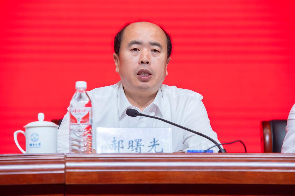 盧國(guó)強(qiáng)強(qiáng)調(diào),一要銘記黨的光榮歷史,勇?lián)姑?,奮楫爭(zhēng)先,堅(jiān)決答好“教育強(qiáng)國(guó),煙大何為”的時(shí)代命題。緊緊圍繞學(xué)校第五次黨代會(huì)“一五八一”總體部署,堅(jiān)持教育發(fā)展、科技創(chuàng)新、人才培養(yǎng)一體推進(jìn),大力弘揚(yáng)“海納百川、敢為人先”的煙大精神,持續(xù)打磨學(xué)校40年來(lái)砥礪初心的特色、開(kāi)放合作的本色、勇于創(chuàng)新的底色、追求卓越的亮色,深入實(shí)施學(xué)科立校戰(zhàn)略、人才強(qiáng)校戰(zhàn)略、開(kāi)放榮校戰(zhàn)略、服務(wù)興校戰(zhàn)略、數(shù)字活校戰(zhàn)略等五大戰(zhàn)略,以追求卓越的精神狀態(tài),不斷把黨的建設(shè)和學(xué)校事業(yè)推向前進(jìn)。二要加強(qiáng)創(chuàng)新理論武裝,堅(jiān)持以習(xí)近平新時(shí)代中國(guó)特色社會(huì)主義思想培根鑄魂。及時(shí)跟進(jìn)學(xué)習(xí)習(xí)近平總書(shū)記重要講話(huà)和重要指示批示精神,堅(jiān)定扛牢“走在前、挑大梁”的使命擔(dān)當(dāng),做到學(xué)思用貫通、知信行統(tǒng)一;抓緊抓實(shí)黨員干部教育培訓(xùn),扎實(shí)開(kāi)展黨紀(jì)學(xué)習(xí)教育,以理論武裝鑄魂、以教育培訓(xùn)強(qiáng)基、以實(shí)踐鍛煉聚能;持續(xù)深化“12345”思想政治工作體系建設(shè),集中力量辦好四十年校慶,著力提升文化軟實(shí)力。三要著力夯實(shí)基層基礎(chǔ),深化賦能增效,全面增強(qiáng)黨組織政治功能和組織功能。堅(jiān)持大抓基層的鮮明導(dǎo)向,深入貫徹落實(shí)《中國(guó)共產(chǎn)黨普通高等學(xué)?;鶎咏M織工作條例》,強(qiáng)化黨建陣地關(guān)口前移,鍛造有效推動(dòng)高質(zhì)量發(fā)展的堅(jiān)強(qiáng)堡壘;提升黨建工作科學(xué)化水平,健全學(xué)校黨建工作體系,運(yùn)用數(shù)字化思維加強(qiáng)黨建工作智慧化、科學(xué)化建設(shè),推動(dòng)黨建工作創(chuàng)新發(fā)展;深化黨建特色品牌建設(shè),鞏固拓展全省黨建工作示范高校建設(shè)成果,實(shí)施“精準(zhǔn)黨建、質(zhì)量黨建、融合黨建、效能黨建”,持續(xù)推進(jìn)黨建示范創(chuàng)建和質(zhì)量創(chuàng)優(yōu)。四要突出高水平高質(zhì)量,持續(xù)深化改革,奮力譜寫(xiě)學(xué)校高質(zhì)量發(fā)展的嶄新篇章。堅(jiān)持高點(diǎn)定位,加快實(shí)現(xiàn)核心辦學(xué)指標(biāo)新突破,深化內(nèi)涵建設(shè)、強(qiáng)化學(xué)科特色優(yōu)勢(shì),深化辦學(xué)特色、提升服務(wù)地方能力和實(shí)際成效,扎實(shí)推進(jìn)開(kāi)發(fā)區(qū)科教園區(qū)(八角灣校區(qū))建設(shè)發(fā)展;用好重要法寶,深刻領(lǐng)會(huì)、準(zhǔn)確把握黨中央關(guān)于進(jìn)一步全面深化改革的部署要求,持續(xù)深化綜合改革,以教育評(píng)價(jià)改革為牽引,構(gòu)建更加科學(xué)有效的內(nèi)部評(píng)價(jià)體系;統(tǒng)籌一體推進(jìn),持續(xù)深化黨建業(yè)務(wù)互融互促,抓好干部隊(duì)伍和師資隊(duì)伍建設(shè),推進(jìn)以績(jī)效考核為核心的人事制度改革,健全黨建與業(yè)務(wù)工作融合發(fā)展的機(jī)制載體,把黨的政治優(yōu)勢(shì)、組織優(yōu)勢(shì)、密切聯(lián)系群眾的優(yōu)勢(shì)轉(zhuǎn)化為推動(dòng)學(xué)校高質(zhì)量發(fā)展的成功實(shí)踐。全體黨員要時(shí)刻緊扣學(xué)校發(fā)展大局,堅(jiān)定煙大特質(zhì)、煙大品質(zhì)、煙大氣質(zhì),勇于擔(dān)當(dāng)、積極作為,讓黨旗在教學(xué)科研、管理服務(wù)一線高高飄揚(yáng),為把煙臺(tái)大學(xué)建設(shè)成為特色鮮明、開(kāi)放創(chuàng)新、國(guó)內(nèi)外具有重要影響力的高水平大學(xué)而團(tuán)結(jié)奮斗。
