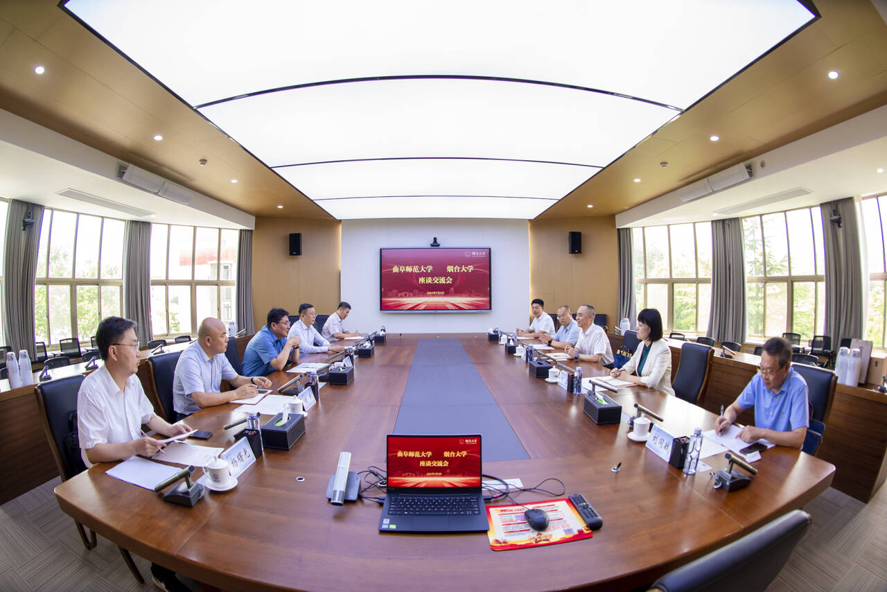 白青對李兆祥一行表示熱烈歡迎,并簡要介紹了學(xué)校歷史沿革、辦學(xué)特色和依法治校等方面情況。李兆祥對煙臺(tái)大學(xué)發(fā)展取得的顯著成績表示贊賞,同時(shí)介紹了曲阜師范大學(xué)有關(guān)情況。
