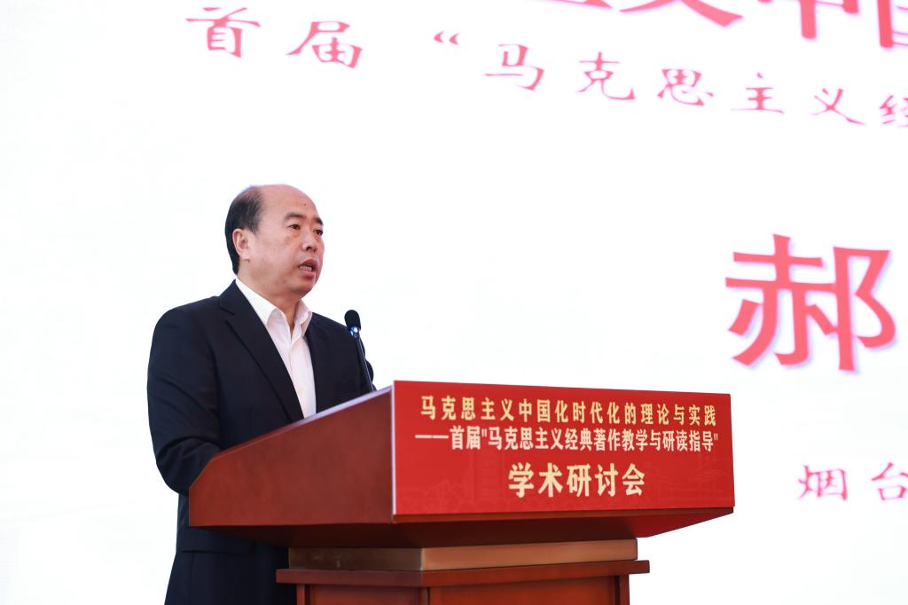 郝曙光在致辭中代表煙臺大學向出席學術研討會的專家學者表示熱烈歡迎,并結合北京大學對學校的援建歷程,介紹了學校四十年來的發展成就和馬克思主義學院學科建設情況。他指出,此次研討會立意高遠、視野宏大、思想深邃,不僅是一次學術交流的盛會,更是對馬克思主義經典著作研讀資助計劃的傳承和延續,是推動馬克思主義中國化時代化的重要舉措。研討會的召開正值煙臺大學建校四十周年,必將進一步推動學校馬克思主義理論學科高質量發展,助力煙臺大學和馬克思主義學院學科建設和事業發展再上新臺階,更好地服務省市發展大局。