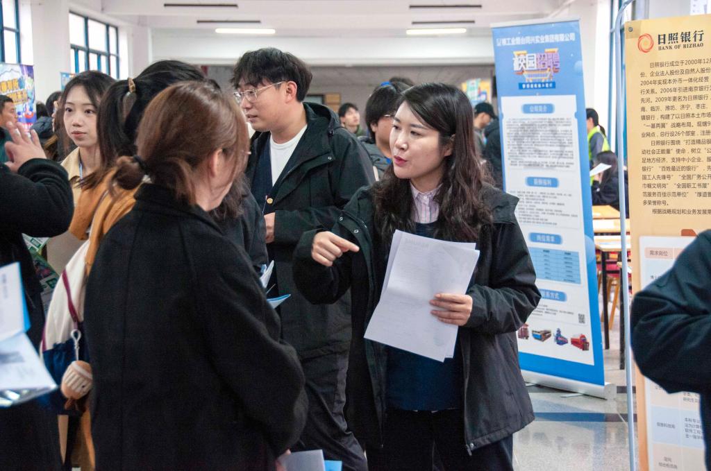 招聘活動由山東省人力資源和社會保障廳、山東省教育廳聯合主辦,煙臺大學承辦,線上線下同步進行。中國化學工程第十一建設有限公司、中節能萬潤股份有限公司、泰和新材集團股份有限公司等58家用人單位到場招聘,煙臺黃渤海新區人社局、威海市人社局組織20余家重點企業來校選聘人才,招聘范圍涵蓋機械、化工、材料、電子信息、計算機、生物醫藥等多個關鍵領域及行業,提供職位207個、就業崗位1700余個,參會畢業生2000余人。活動現場氣氛熱烈,畢業生就普遍關注的工作條件、崗位要求、薪資待遇及成長空間等問題主動向招聘負責人交流咨詢。