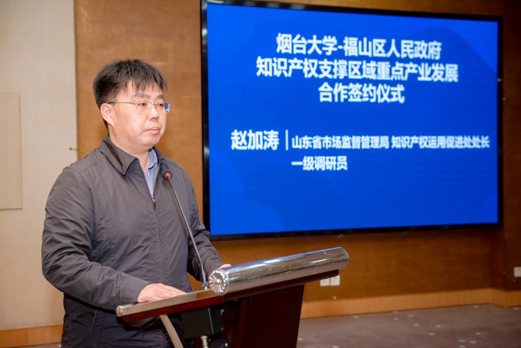 趙加濤指出,福山區人民政府和煙臺大學聯合舉辦“專利定向轉化支撐重點產業發展”活動,是推動知識產權轉化與區域產業深度融合的創新舉措,將為高校、科研院所與企業發展搭建資源互補、雙向賦能的橋梁,有助于盤活高校和科研機構的存量專利,推動知識產權工作與產業發展融合。他表示,希望雙方建立長效溝通機制,圍繞專利轉化落地、聯合技術攻關、人才培養輸送等方面達成更多共識,推動更多知識產權創新成果賦能重點產業鏈發展,為山東知識產權強省建設作出新貢獻。