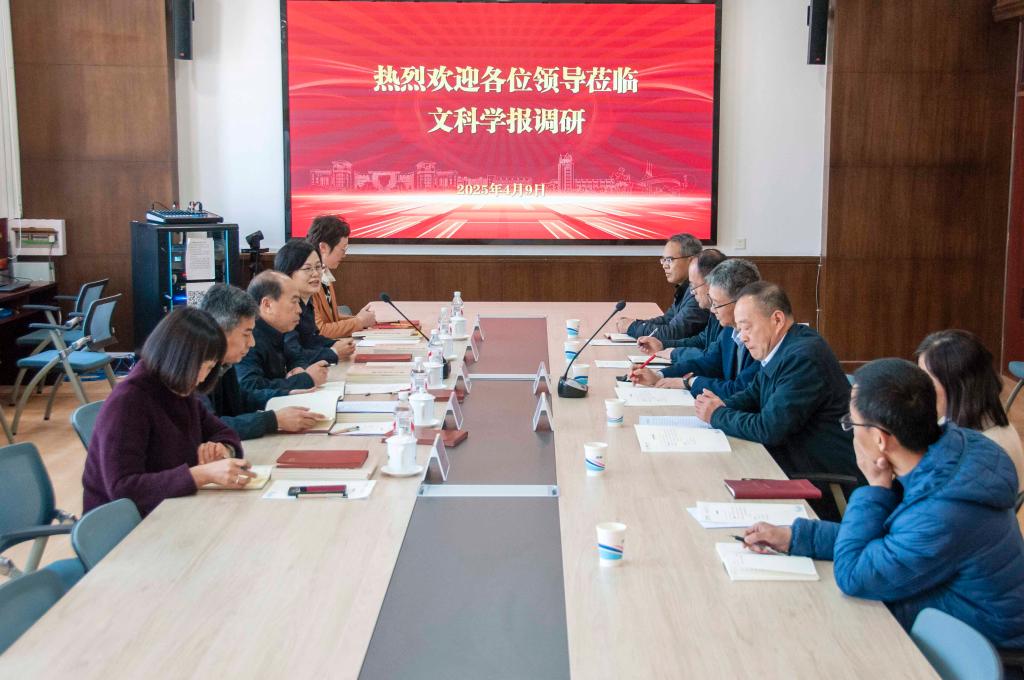 【本站訊】4月9日,黨委副書記、校長郝曙光到學(xué)報編輯部開展專題調(diào)研,了解文科學(xué)報發(fā)展情況,并與文科學(xué)報全體人員進(jìn)行深入交流。黨委常委、副校長馮素玲主持調(diào)研座談。