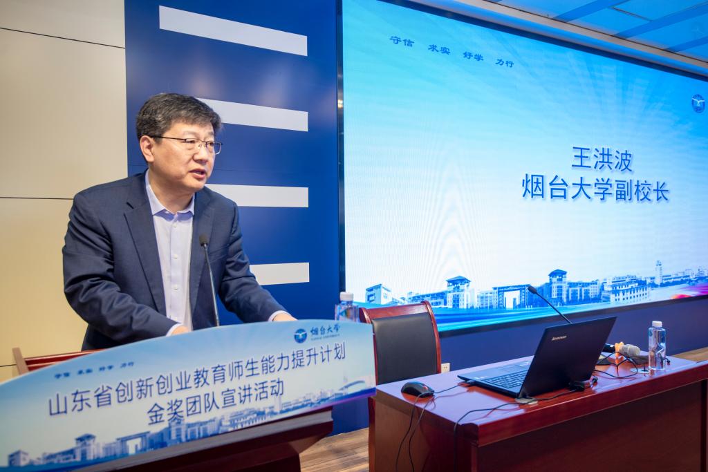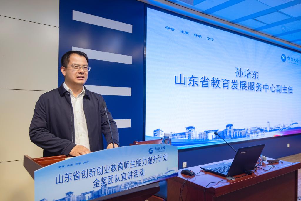 【本站訊】為進一步推動學校創新創業教育工作高質量發展、提升科創育人工作水平,4月23日下午,學校舉辦創新創業教育師生能力提升計劃金獎團隊宣講活動。山東省教育發展服務中心副主任孫培東、雙創教育部部長王昭,煙臺大學黨委常委、副校長王麗,煙臺大學副校長王洪波出席活動。