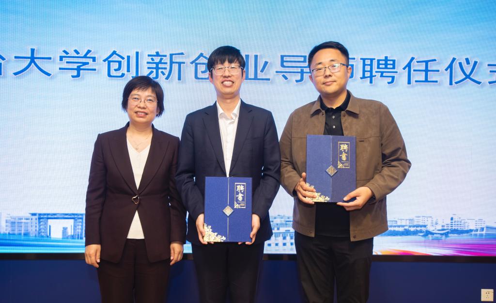 王麗為來自山東大學的中國國際大學生創新大賽金獎指導教師頒發“煙臺大學創新創業導師”聘書。