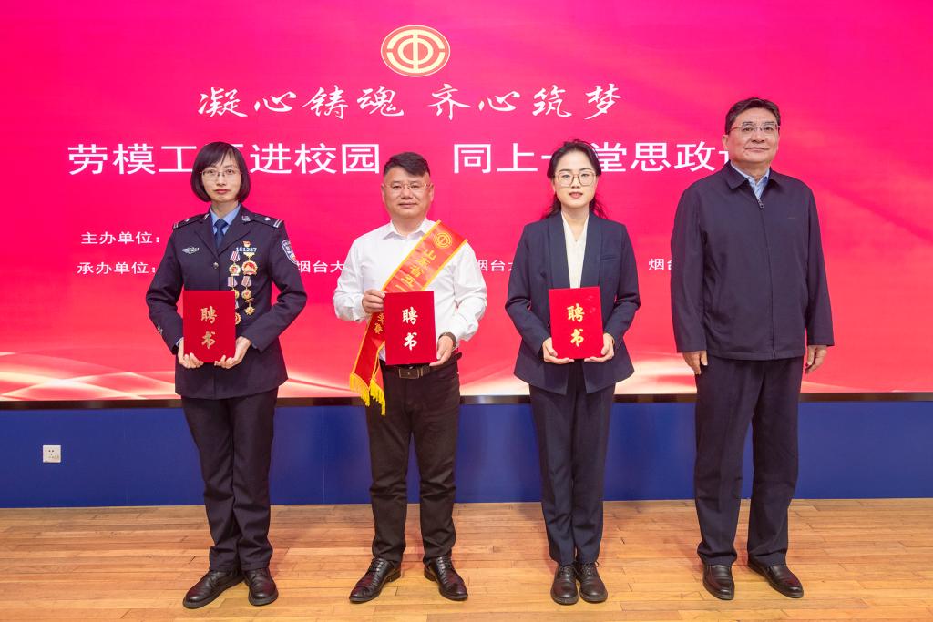 會上,白青為曹園媛、崔力元頒發煙臺大學校外職業指導(就業創業)教師聘書,為張興業頒發煙臺大學工會活動校外指導教師聘書。