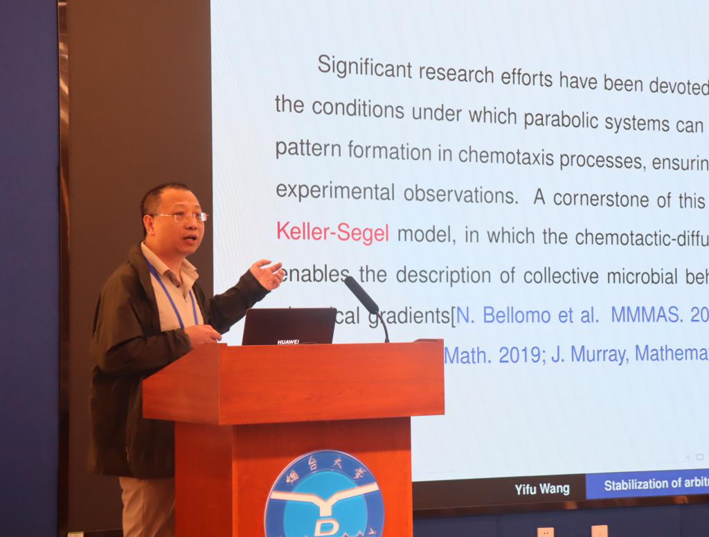 本次研討會匯聚了來自北京大學(xué)、武漢大學(xué)、香港中文大學(xué)(深圳)、重慶大學(xué)、中國人民大學(xué)、哈爾濱工業(yè)大學(xué)、北京理工大學(xué)等國內(nèi)頂尖高校及科研院所30余位專家學(xué)者。研討會期間,北京理工大學(xué)王一夫教授、吉林大學(xué)劉長春教授、大連理工大學(xué)衣鳳岐教授等15位專家圍繞“三維雙重退化營養(yǎng)趨化系統(tǒng)中任意結(jié)構(gòu)的穩(wěn)定性”(Stabilization of arbitrary structures in a three-dimensional doubly degenerate nutrient taxis system)“具有p-拉普拉斯擴(kuò)散效應(yīng)腫瘤侵襲模型解的整體存在性”(Global solutions to a cancer invasion model with p-Laplacian diffusion)“模擬CIMA化學(xué)反應(yīng)的耦合雙層Lengyel-Epstein反應(yīng)-擴(kuò)散系統(tǒng)的動力學(xué)性質(zhì)”(The dynamics of the coupled reaction-diffusion Lengyel-Epstein system with two layers modeling CIMA chemical reactions)等內(nèi)容帶來精彩報(bào)告。與會專家學(xué)者還圍繞偏微分方程及其相關(guān)領(lǐng)域應(yīng)用的前沿?zé)狳c(diǎn)問題、新型研究方法和定性理論分析等方面進(jìn)行深入探討交流,共同分享研究成果。
