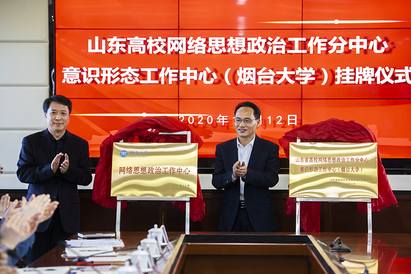 會(huì)上,姚昌、于秀國(guó)先后宣讀了《關(guān)于成立山東省高校網(wǎng)絡(luò)思想政治工作分中心意識(shí)形態(tài)工作中心(煙臺(tái)大學(xué))的通知》《關(guān)于成立煙臺(tái)大學(xué)網(wǎng)絡(luò)思想政治工作中心的通知》。姚昌與周勝良共同為“山東高校網(wǎng)絡(luò)思想政治工作分中心意識(shí)形態(tài)工作中心(煙臺(tái)大學(xué))”“煙臺(tái)大學(xué)網(wǎng)絡(luò)思想政治工作中心”掛牌。