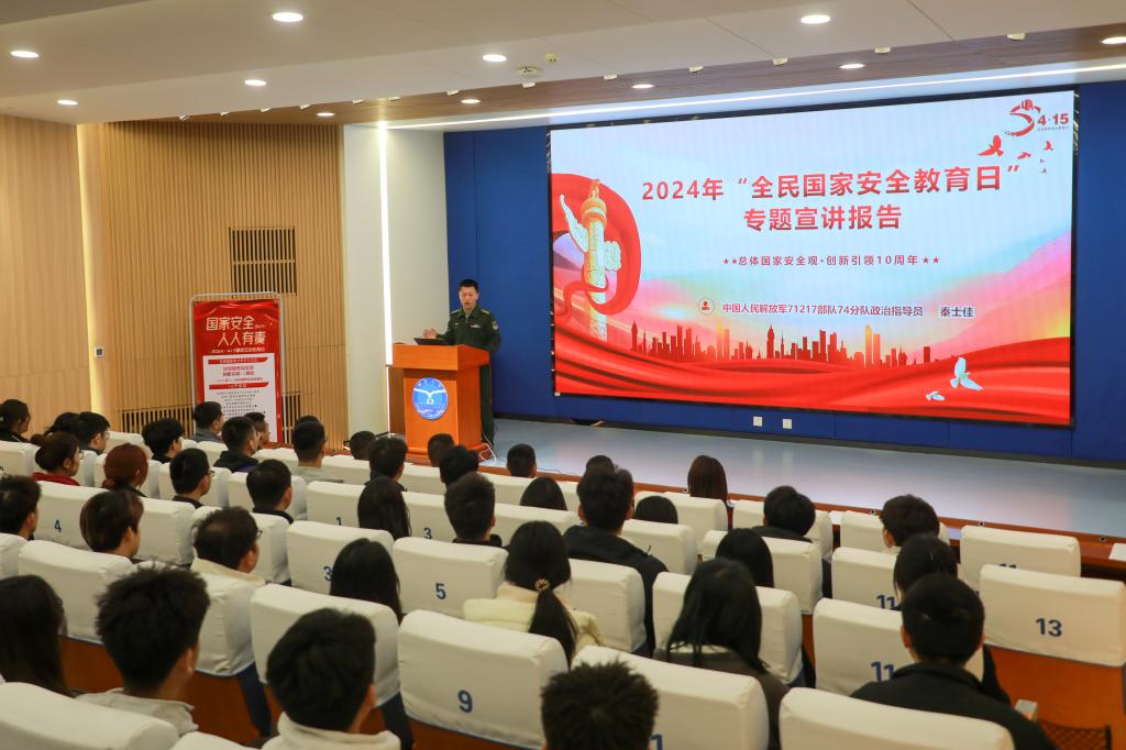 【本站訊】為切實增強師生國家安全意識,4月10日,學校在承先圖書館報告廳以“總體國家安全觀,創新引領十周年”為主題開展國家安全教育活動。中國人民解放軍71217部隊74分隊政治指導員秦士佳面向學校青馬班學院和各學院學生代表作主題報告。