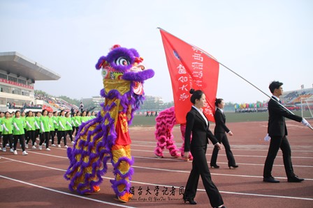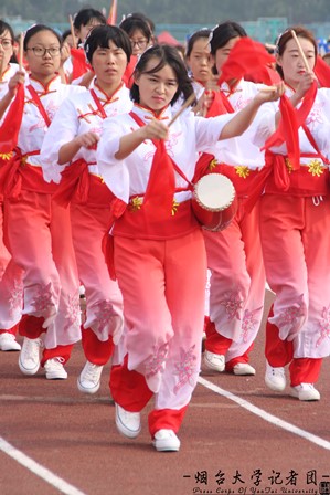 為迎接2016年春季運動會,煙臺大學各大院系在加緊方隊及看臺訓練的同時,也紛紛發揮奇思妙想,為自己的方隊增添創意,彰顯學院個性。光電信息科學學院請來了“兩只獅子”,由光電學子自己組成的舞獅隊,舞出了光電人的風采;計控學院請來了時下火遍大江南北的“熊本熊”,萌萌噠大熊賺足了眼球;生命科學學院青春活力的女生自己組成了啦啦隊,活潑中不失生科風采;外國語學院的女生更是背著小鼓上場,激昂的樂聲伴著有節奏的鼓點彰顯了外院學子奮發進取的精神。